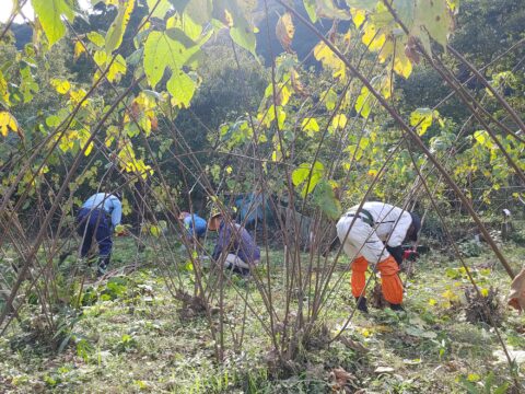 畑のコウゾがぐんぐん成長し、おおたけ手すき和紙保存会では、芽かきに忙しい日々を迎えています。上の写真は、植え付けから三年目を迎えた三ツ石地区第2コウゾ畑の若いコウゾ。もう大人の背丈を超すまでに成長したものもあります。その下の写真は同時期に撮影した一年前のコウゾ畑の様子です。一年違うと生育もだいぶ違うようですね。保存会では、この夏、二週間ごとに、会員や市内外からのサポーターの皆さんが、大竹市内の計6か所の畑でコウゾの芽かきに汗を流しています。